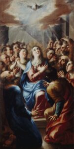 1.º María Santísima ve, con el mayor gozo y consuelo de su alma, cumplido lo que había prometido su divino Hijo. En el mismo día de Pentecostés, cuando con los apóstoles y discípulos continuaba más fervorosa su oración, a la hora de tercia vino sobre su purísima alma, y sobre la de todos los que estaban congregados en el Cenáculo, el Espíritu consolador. El alma de María, que desde el instante de su Inmaculada Concepción era templo vivo del Espíritu Santo, le recibe hoy como esposo, que la viste con sus divinos dones, y la adorna con las otras gracias extraordinarias con que Dios suele distinguir, aunque con diferente medida, a sus amigos los santos. María aumenta hoy extraordinariamente sus méritos y tesoros espirituales. A Vos, pues, Virgen amantísima, acudiré a que me dispongáis para poder participar dignamente de los dones y frutos del Espíritu divino.
